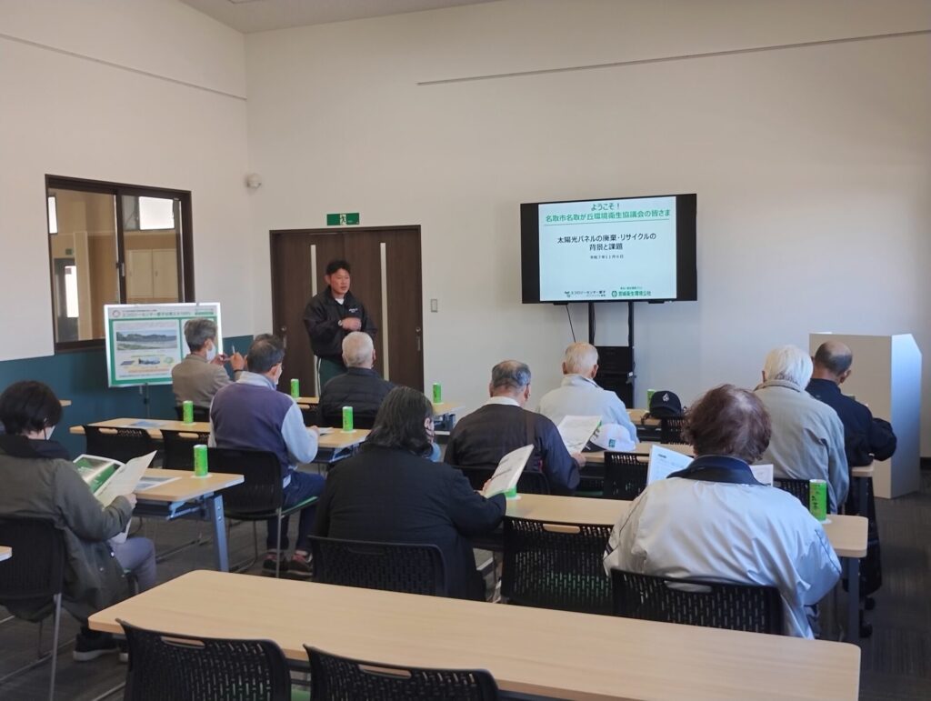 11月6日(木)、仙台市の「環境施設を見る会」に登録されているエコロジーセンター愛子に、名取市名取が丘環境衛生協議会の皆さま11名が見学にお越しくださいました。当日は、当施設の概要に加え、再生可能エネルギーの重要性や、エコロジーセンター愛子が担う役割とその意義についてご説明しました。その後、施設内をご案内し、太陽光パネルのリサイクル工程をご覧いただくことで、理解を深めていただきました。
